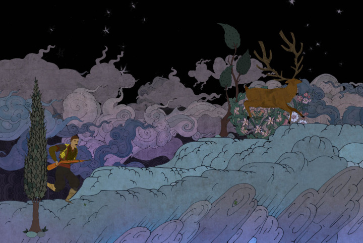 eng info: a short story based on anatolian folk legend about a hunter. a hunter who is lunatic, addicted to hunt red deers. he killed hundreds of them and still he couldnt stop. one time, after a long chase of very huge mother red deer, he mistakenly shot her youngster, while mother escaped. then our story begins…