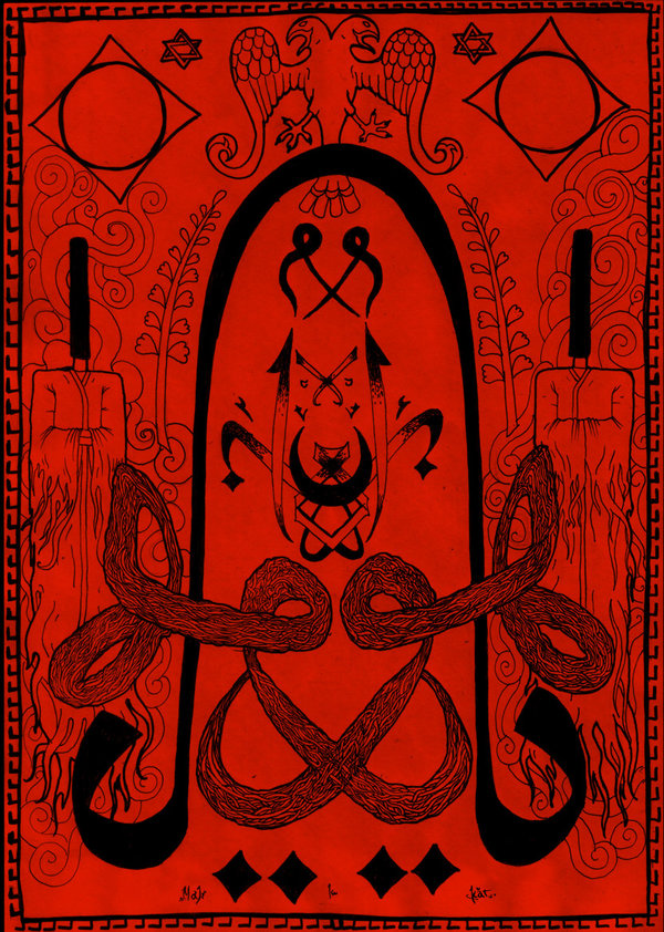 a piece of sufi symbolism. its hard to tell everything in english from begining to end. lets say “equilibrium”. lets say dark and light unite with/under “love”.