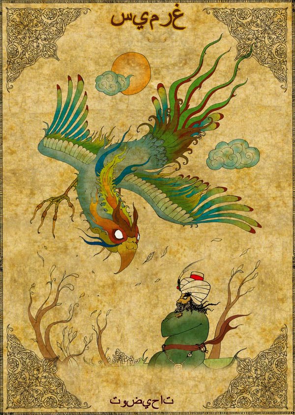 Simurgh or Simorgh is the modern Persian name for a fabulous, benevolent, mythical flying creature. The figure can be found in all periods of Greater Iranian art and literature, and is evident also in the iconography of medieval Armenia, Byzantium and other regions that were within the sphere of Iranian cultural influence.