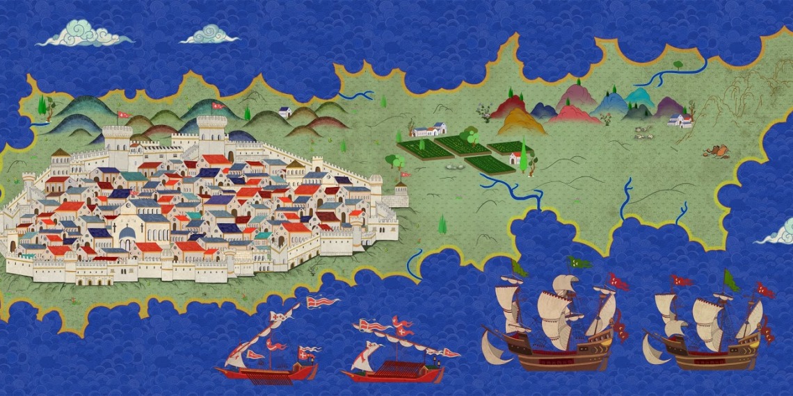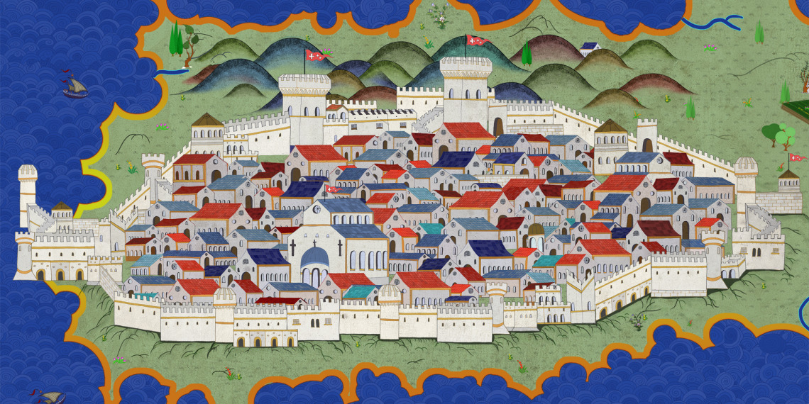 A detailed illustration of Rhodes Island illustration which I’ve made for a documentary project, broadcasted on TV.